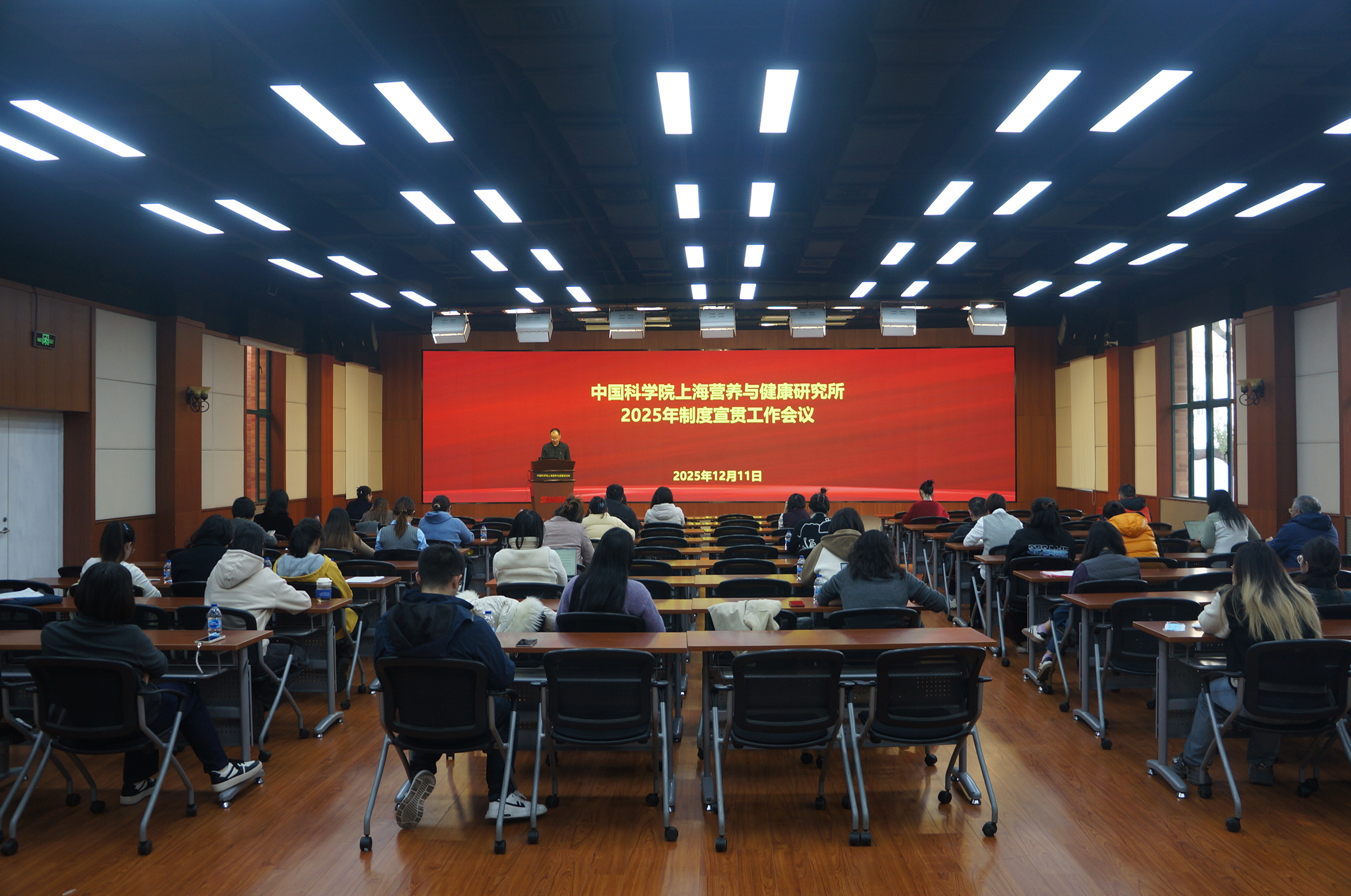 12月11日,中國科學院上海營養與健康研究所召開2025年度規章制度宣貫會議,研究所紀委書記曹永出席會議并致辭,各研究組、職能部門和支撐單元共計60余人參會。會議由所辦公室副主任王瑾主持。